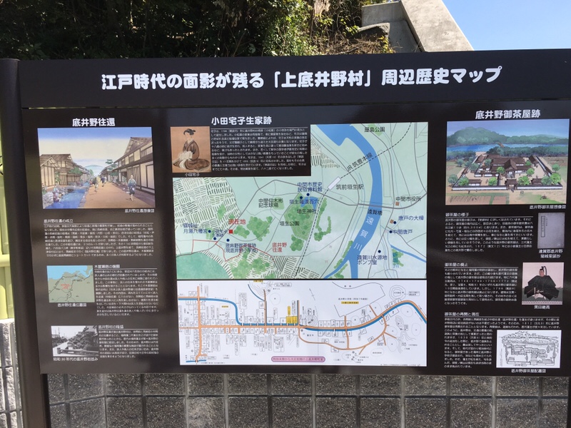かつて江戸時代には、福岡初代藩主黒田長政公の優猟場が整えられ、その後「御茶屋」と呼ばれる藩主の別館が建てられていました。現在の底井野小学校がある所です。その背後の小山が「御座の瀬山」です。付近には鴨の塒(ねぐら)が作られ、藩主が鷹狩りを楽しんだ様子が伺えます。