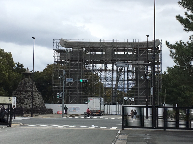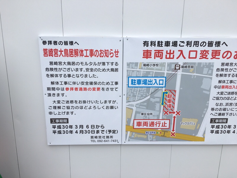 現在、福岡市東区の筥崎宮の大鳥居が解体されています。