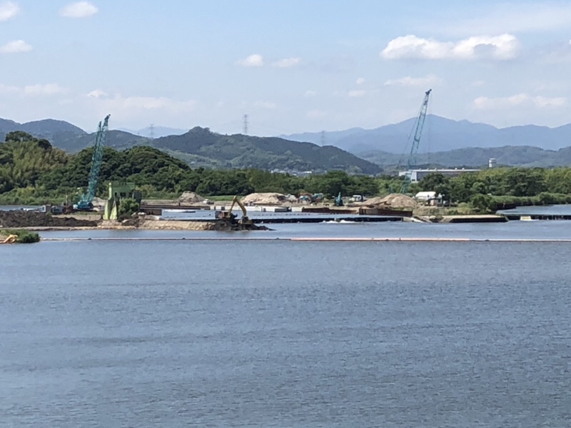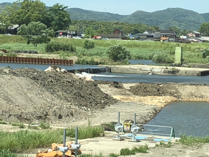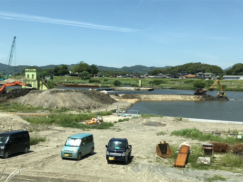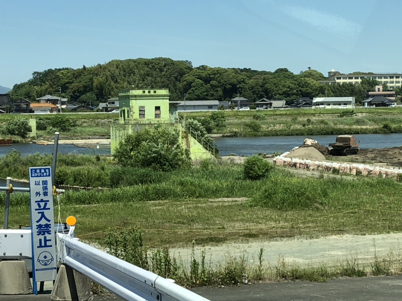 遠賀橋から川上を眺めると、普段は「堰」が超えて水が流れる様子、一旦台風や大雨で増水すると見えなくなり暴れる水に怖さを感じたりと、長く親しんできた風景が無くなるのは寂しいなと思い、写真を撮りました。