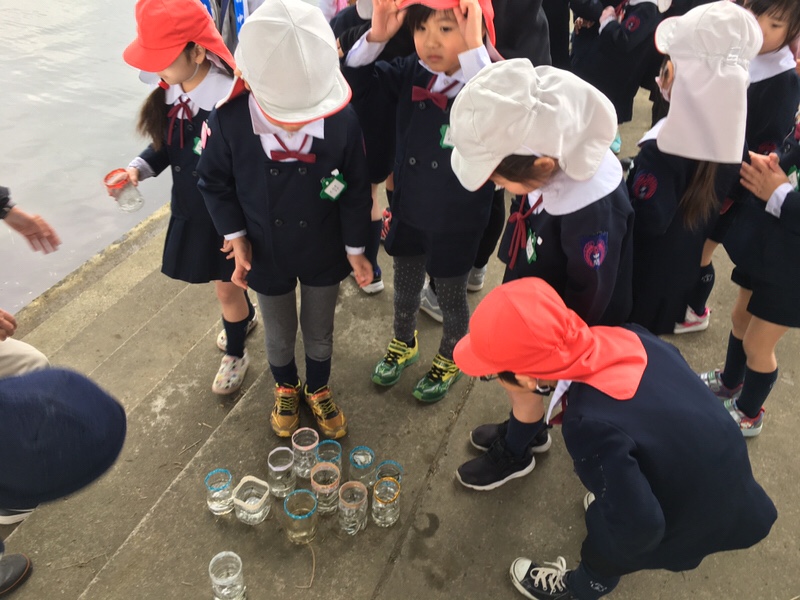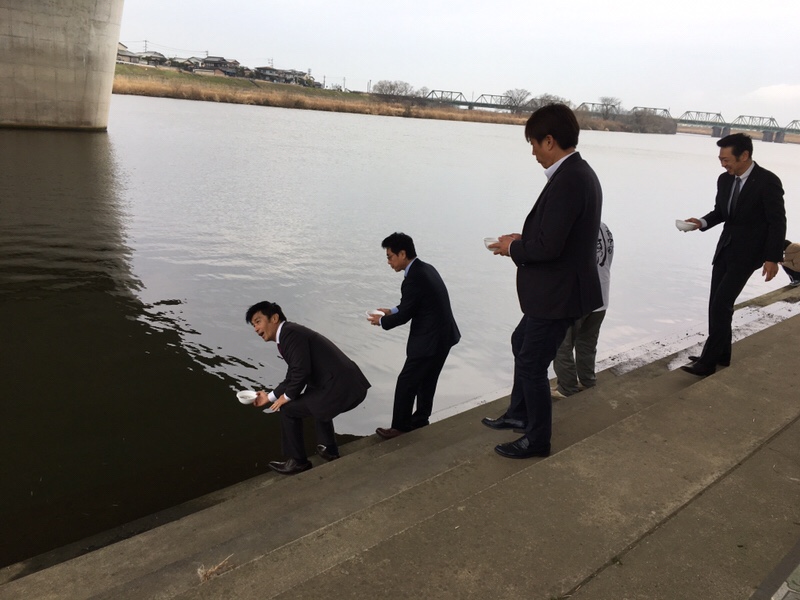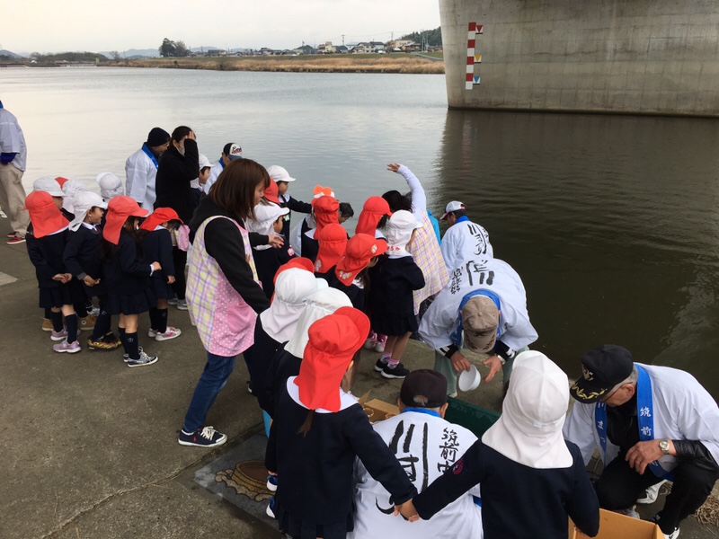 4年後、たくさんの鮭が帰って来てくれることを願いながら、遠賀川に放流しました。